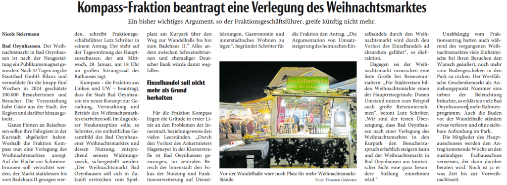 Weihnachtsmarkt – Innenstadt: Das war bislang sein Standort. Und 2025?
